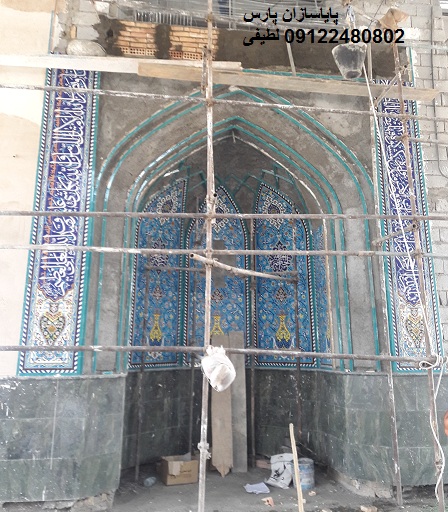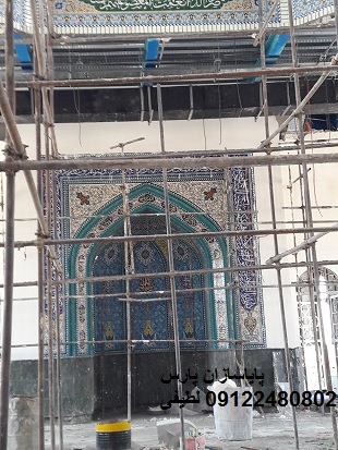 ساخت و کاشی کاری محراب با انواع کاشی هفت رنگ ، مقرنس و کاشی معرق